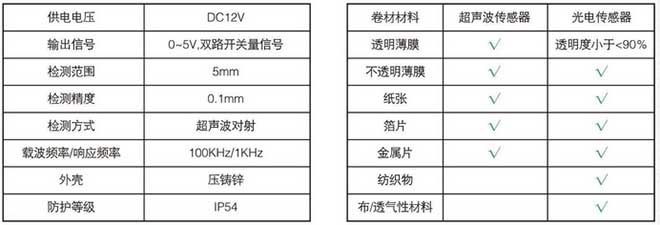 HD-400超聲波糾偏傳感器應用高頻超聲波直線傳 播的原理,用來檢測卷材的邊緣位置。與光電傳感器相 比, 不會受材料透明度的影響,所以使用時無需校調, 非常方便。適用于不透氣材料(例如塑料薄膜,紙張等 等) 的追邊應用(透氣材料例如布,無紡布則不適合)。